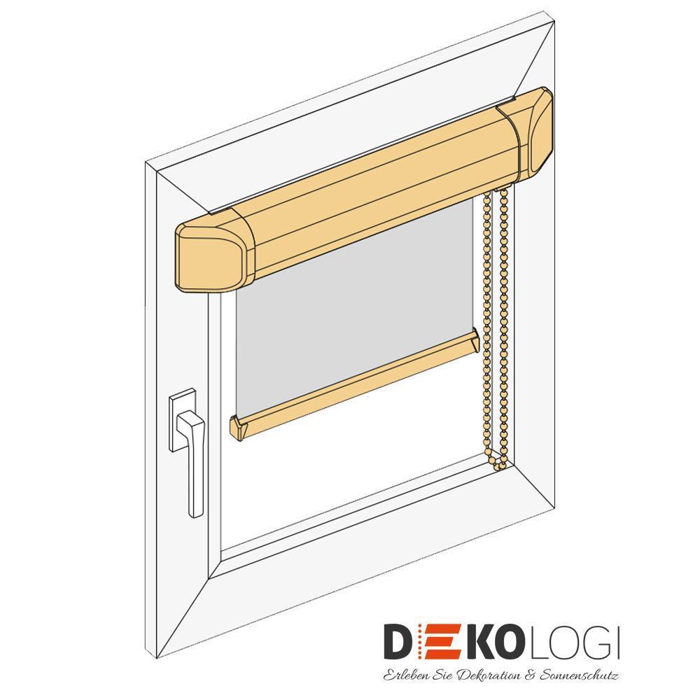 Unser Glasleistenrollo nach Maß, optional zum kleben (in der Kassetten Variante möglich) besteht aus einer halbrunden Kassette, die sich als Standardkassette einfach verschrauben oder mit Klebeleisten Ausführung fixieren lässt. Zum kleben und ohne zu Bohren ist die Montage ein Kinderspiel (Rollo auf der Glasleiste)und kann in der Konfiguration Glasleistenrollo ausgewählt werden. Dieser Design Rollo Typ besticht durch die geringen Abmessungen, da der Zwischenraum zwischen Fenster Profil und Fensterglas genutzt wird. Die Bedienung erfolgt durch die seitliche Kette und kann den Stoff stufenlos bewegen. Achtung: Das Glasleistenrollo ist nur bei einer eckigen Glas Falz möglich, bei abgerundeten Fensterkanten ist ein Einbau suboptimal!