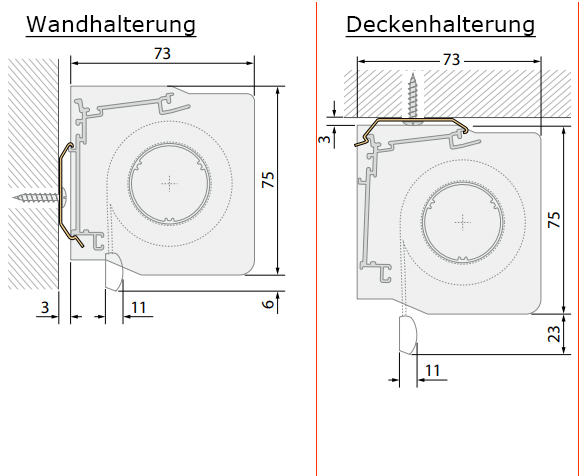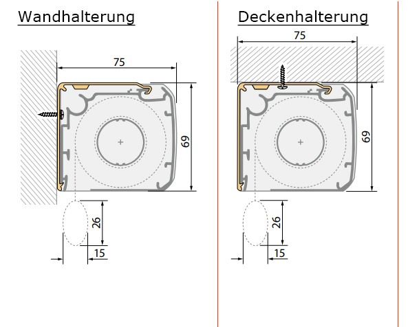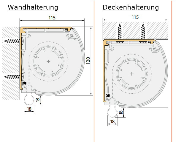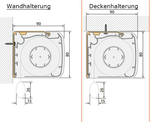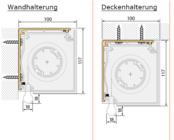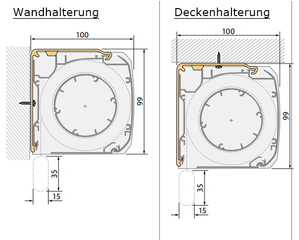Rollo Kassette mit Schienen