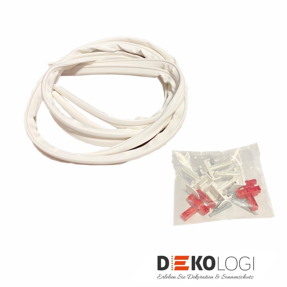 Bei Dachausschnitten (Innenverkleidung) über 240cm Länge sowie Fenster Kombinationen mit vertikalen Fenster Elementen (Abseite) werden zwei Insektenschutzrollos benötigt und mit dem Verbindungsset ZOZ 157SWL verbunden. Enthalten sind Endkappen, Schrauben, Dichtungen sowie eine Montageanleitung.