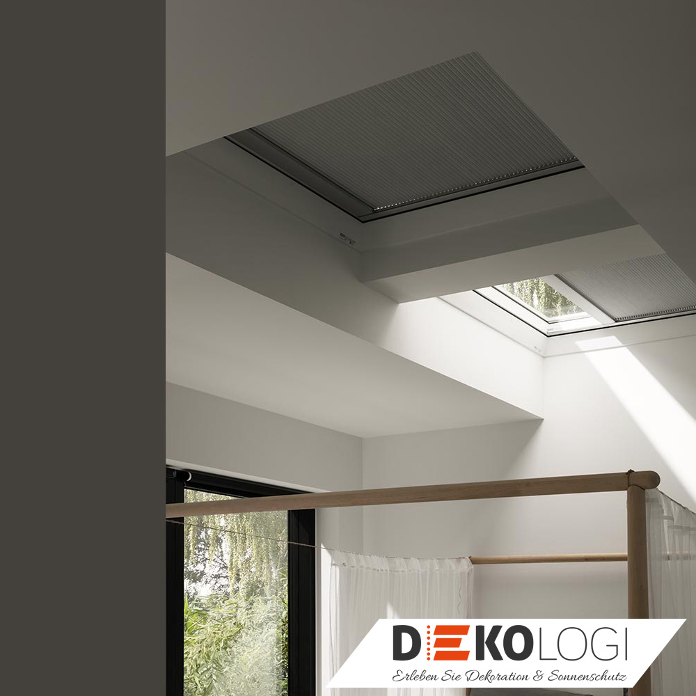Komfort Wabenplissee mit elektrischer Bedienung für Ihr Flachdach Dachfenster nach Ihren Farbvorstellungen ausstatten. Mit Wandtaster, Handy-App oder einer fremden Haussteuerung stufenlos bedienen und im Sommer geschützt sein. Durch den Stoff erhalten Sie eine reduzierende Wärmeentwicklung an der Glasscheibe und können so sehr einfach Hitzetage kompensieren.
